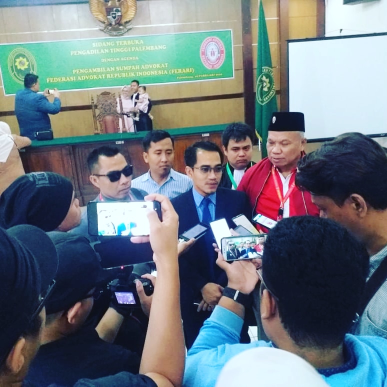 VIVA SUMSEL.COM, Palembang – Ketua Pengadilan Tinggi Palembang, Soedarmadji melakukan pengambilan sumpah terhadap 12 advokat Federasi Advokat Republik Indonesia (FERARI) Sumatera Selatan (Sumsel), di Aula Pengadilan Tinggi, Jalan Jendral Sudirman