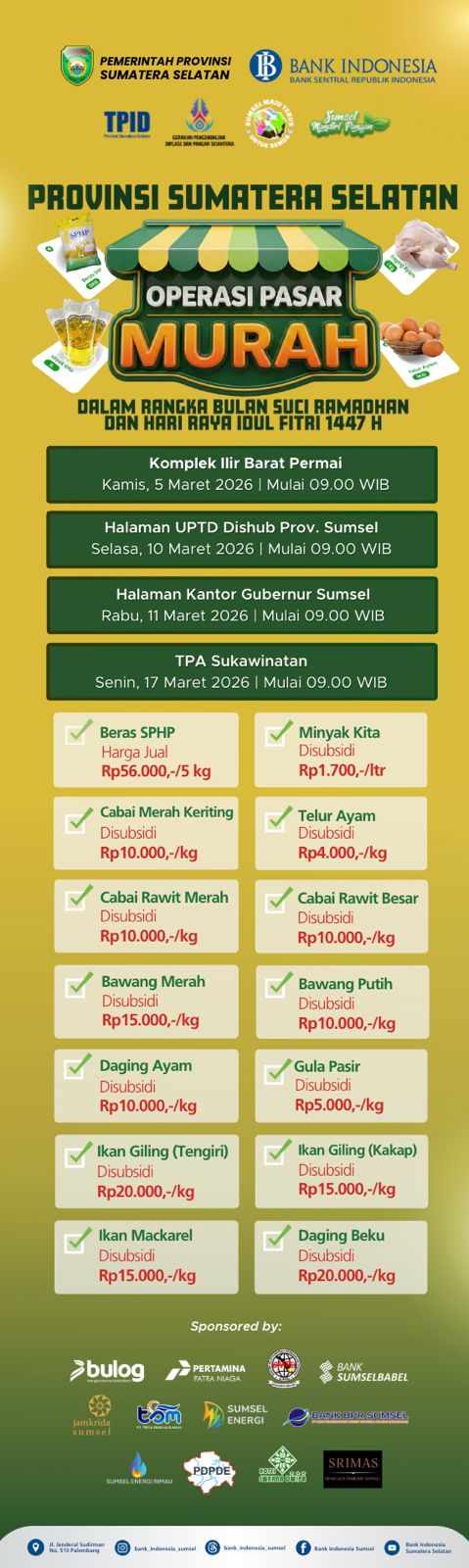 TPID Sumsel Gelar Pasar Murah di 4 Lokasi Selama Ramadan 2026, Ini Jadwal Lengkapnya